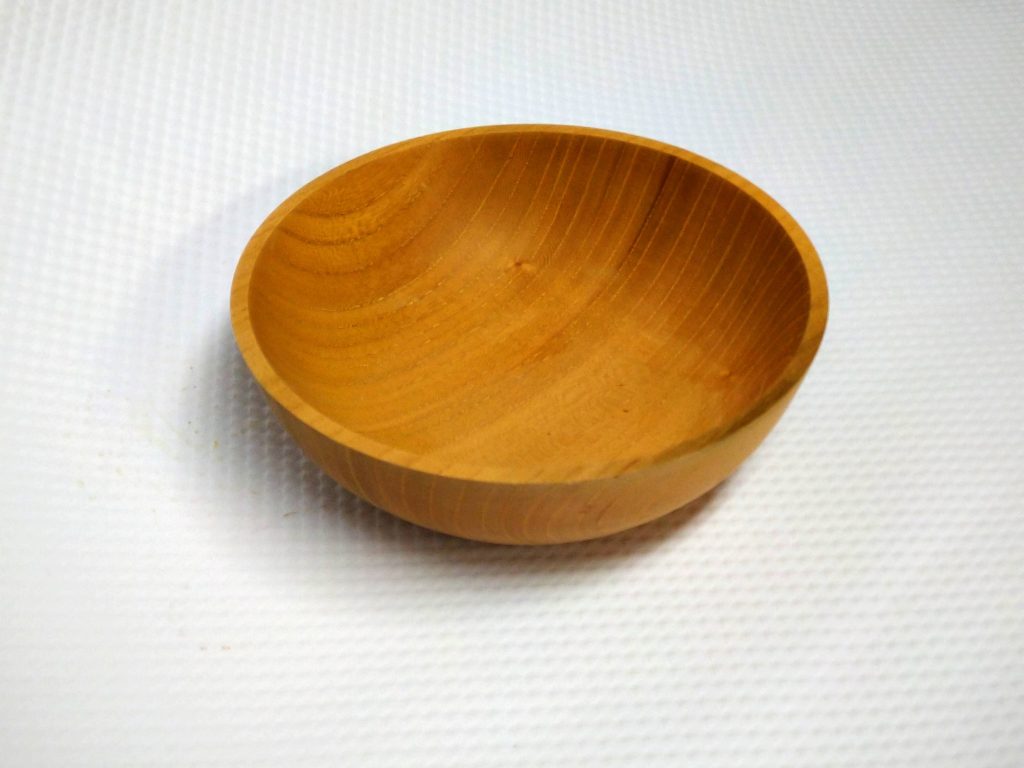 先生の補助でなんとか形になりました。エッジを丸めてぬくもり感を出すか悩みましたが、シャープな感じの木の器も珍しいので、このままにしました。